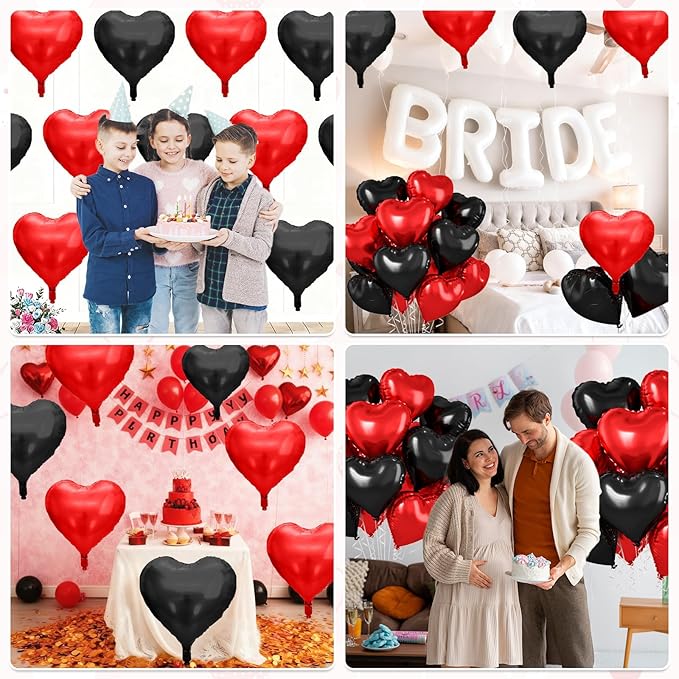 - Romantic Party Choice: Perfect for weddings, bridal showers, birthdays, baby showers, or anniversaries, these red black heart balloons fit any occasion that needs a sweet touch. Use them for balloon bouquets, photo backdrops, table centerpieces, or to brighten up indoor and outdoor party spaces.