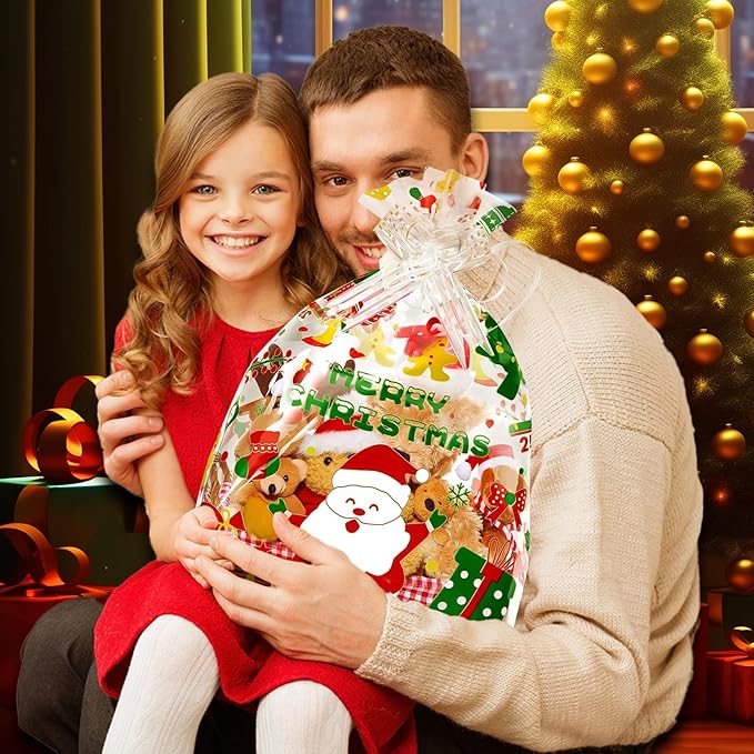 - βοΈ FESTIVE DESIGNS THAT SPARK JOY: Our christmas wrapping bags feature vibrant patterns of snowflakes, Santa, reindeer, and Christmas trees! The clear cellophane bags allow these holiday motifs to pop while letting your gifts shine through. Creates instant Christmas magic for parties, stocking stuffers, and neighbor gifts.