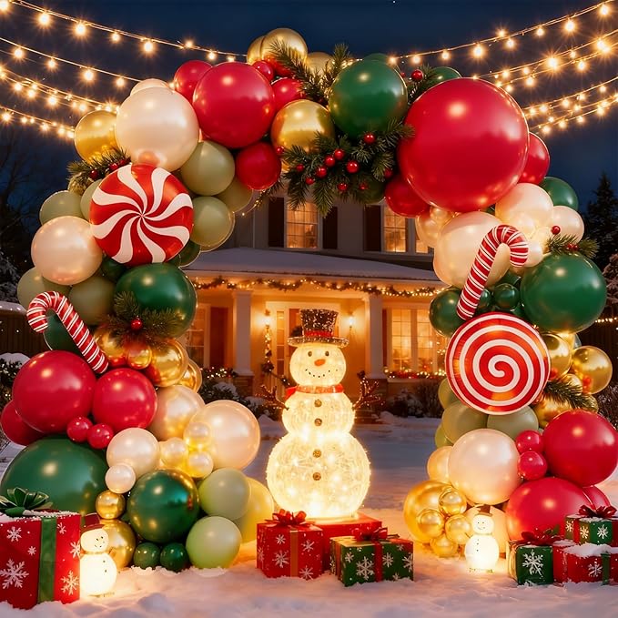- Easy to Assemble DIY Balloon Garland - This Christmas balloon arch is simple to build β just inflate and insert the balloons into the included strip, using glue dots and ribbon for extra stability. In about 40β60 minutes, you can create your own professional-looking balloon arch. Add lights, Christmas socks, or gift boxes for a personalized holiday touch!