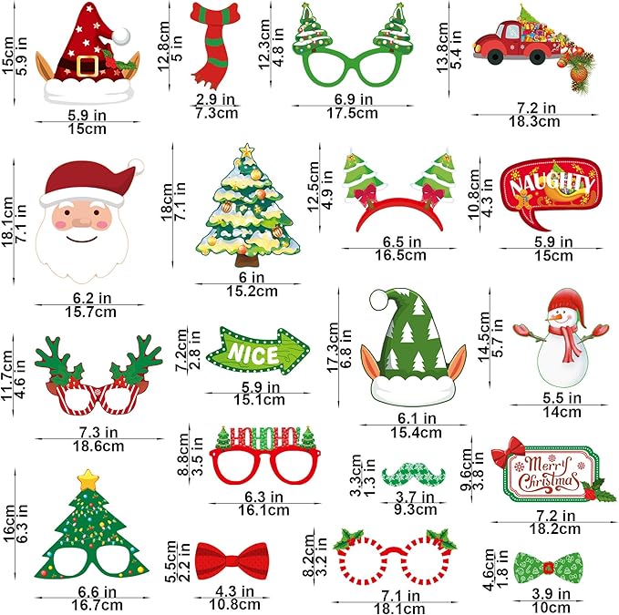 - FESTIVE HOLIDAY PHOTO PROPS SET: Get ready to spread the Christmas cheer! This 32-piece photo booth prop set includes Santa hats, elf ears, reindeer glasses, candy canes, Christmas trees, snowmen, and more. Perfect for capturing fun, festive moments.