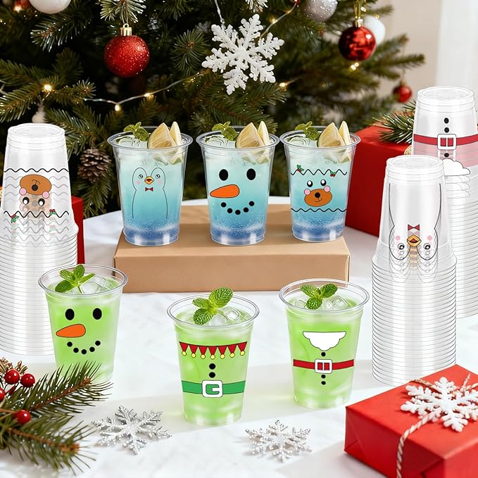 - Convenient & Practical: These adorable transparent Christmas themed cups create a rich festive atmosphere. As disposable Christmas party cups, they offer effortless cleanup—simply toss them after use