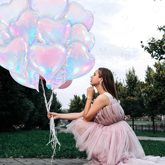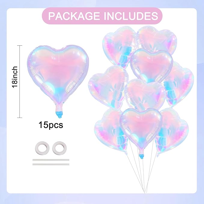 - PACKAGE CONTENT: You will get 15pcs 18inch Iridescent heart shape foil balloons,2pcs straw and 2pcs ribbon in a wide range of quantities to suit your decorating needs.