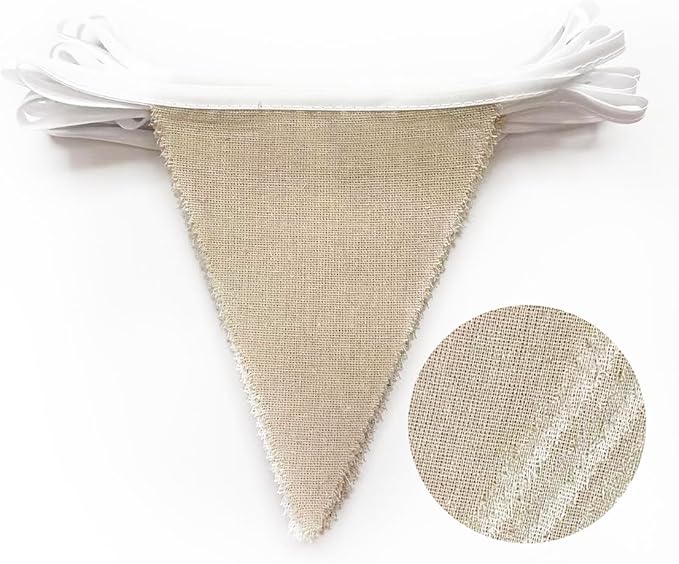 - Rustic Party Choice: These beige and white burlap triangle flags are good ideal for any kind of celebration, party, festival, events or other occasion. It can be used by both kids and adults. Like wedding, birthday, baby shower, holidays, camping party, boho party, rustic party, spring party, easter, New Years, Christmas, nursery christening, family gatherings, outdoor activities, picnics, tea party,Thanksgiving party etc.
