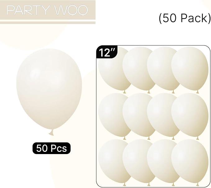 PartyWoo Beige Balloons 50 pcs 12 Inch Cream Ivory White Balloons for Wedding Baby Shower Birthday Bridal Shower Graduation Engagement Easter Anniversary Tea Boho Party Decorations White-Q08