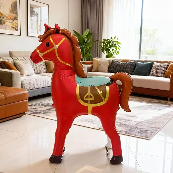 Large 3D Standing Horse Foil Balloon,58 Inch Inflatable Horse Balloons Party Decoration,Western Themed Decor for Cowboy Birthday,Baby Shower Self-Standing Animal Decorations Supplies (Red)
