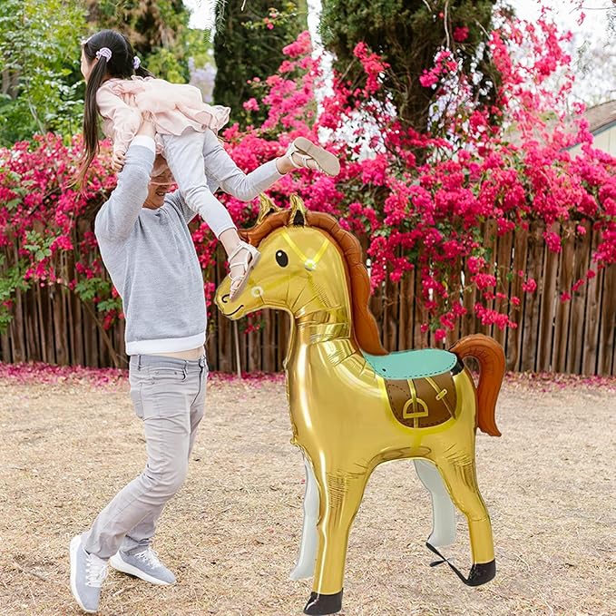 Jumbo 3D Inflatable Horse Balloon,58" Standing Animal Noble Horse Foil Balloon for Party Decoration,Western Cowboy Themed Equestrian competition performance Birthday Party Supplies (Gold)